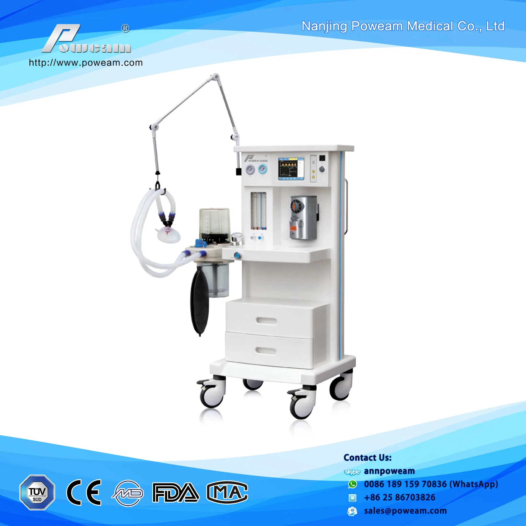 Medical Equipment Anaesthesia Machine FEATURES of newest anesthesia machine: 5.7" LCD display Applicable to adults and children Gas source: O2 and N2OFour tube flowmetersVentilation mode:IPPV,PEE,MANUAL,SIGH,SIPPV,SIMVThree working modes: all-close, semi-close, semi-openHigh-precision anestheti......