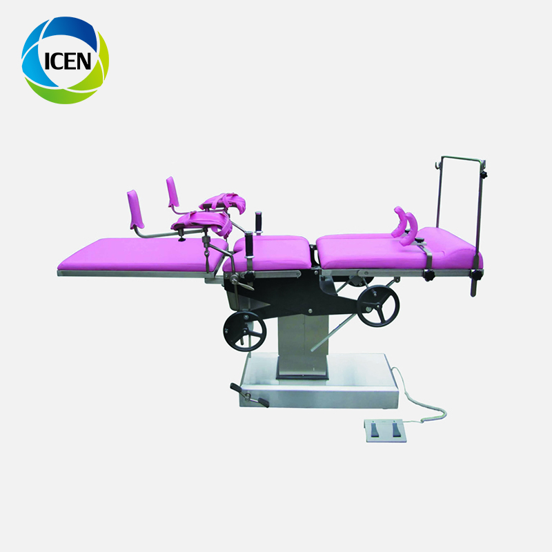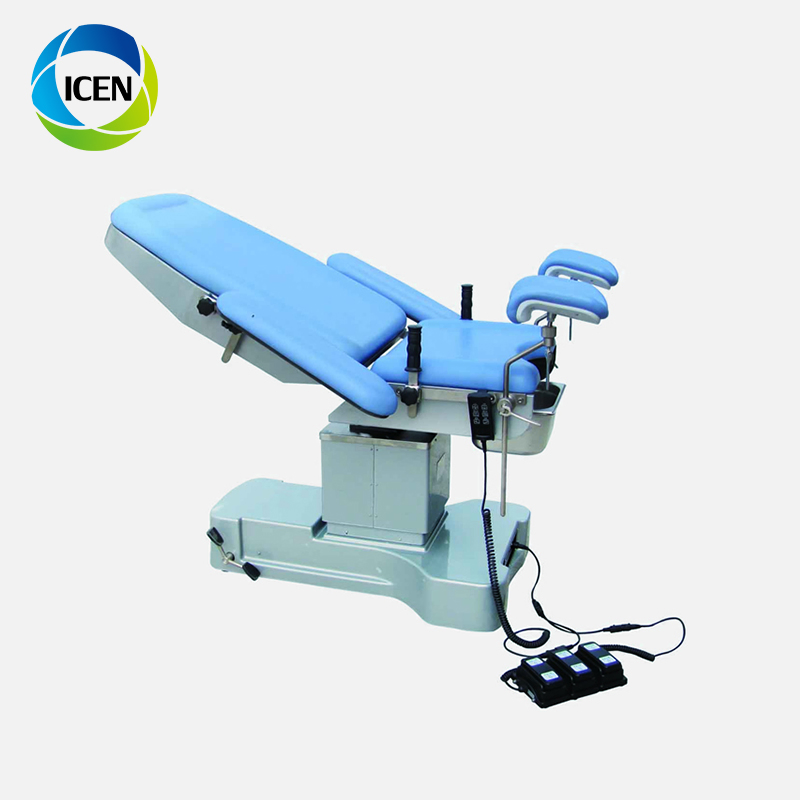 The electric operating table includes the table top, three-dimensional, electronic control, accessories and other parts. The table top can be displaced back and forth on the main body as needed, and the front and rear displacement is greater than 400 mm. The countertop is made of engineering plastic and the column is placed sideways for fluoroscopy of the patient.